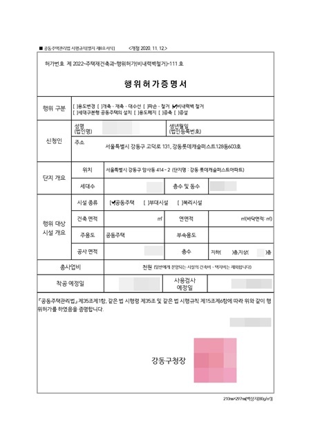 | 입주민 동의서 ~ 발코니 확장 행위허가 - 서울 노원구 상계동 상계주공14단지 (0) | 2022.09.26 |