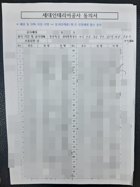발코니 확장 공사 전 동의서 서명을 받기 위해