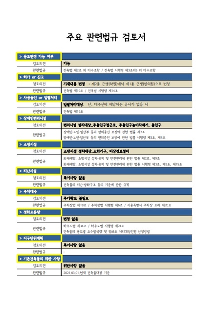 | 건축물 용도변경 전 법규 검토 진행 - 영등포구 당산동6가 (0) | 2022.10.05 |