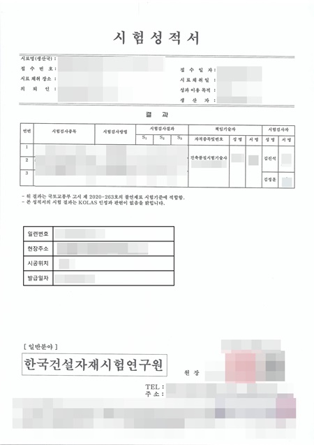 사용승인 시험 성적서도 함께 제공해 드립니다.