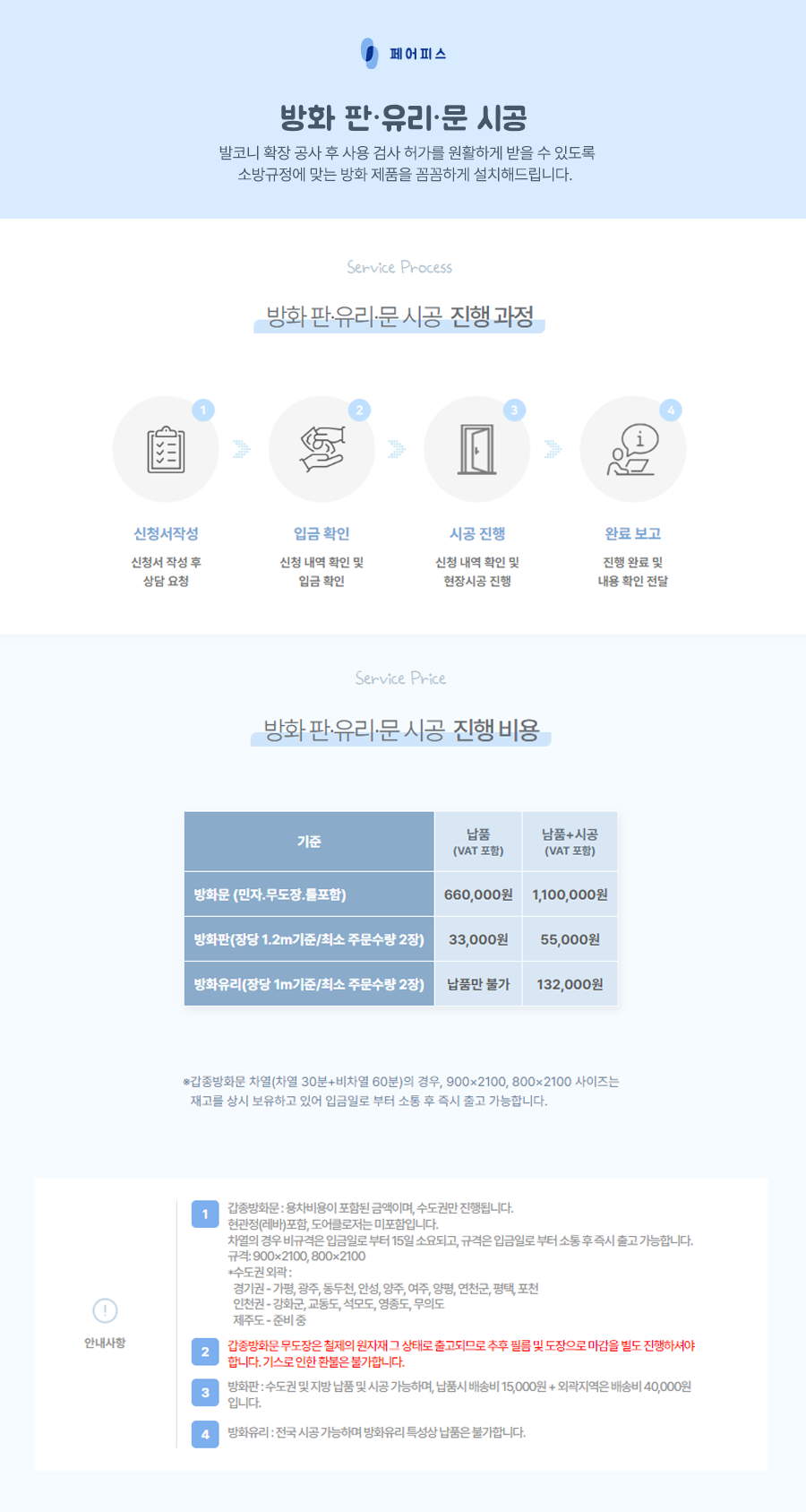 페어피스는 다양한 방화시설 서비스를 운영하며