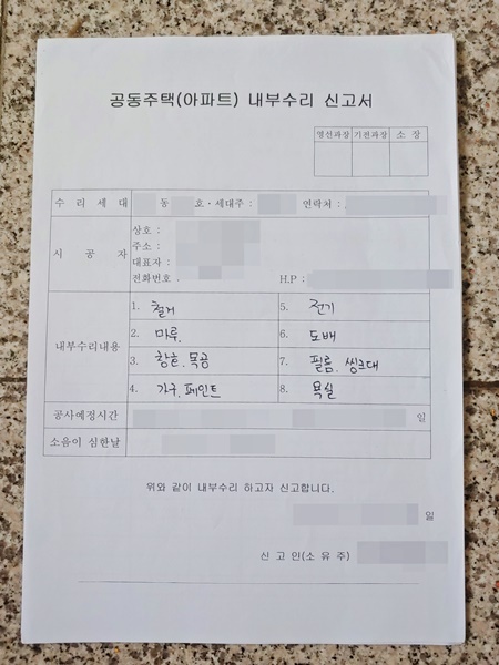 건물마다 정해진 인테리어 동의서 기준도 다르고