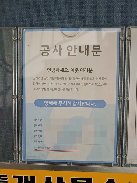 인테리어 공사 전 입주민분들의 동의를 얻기 위해