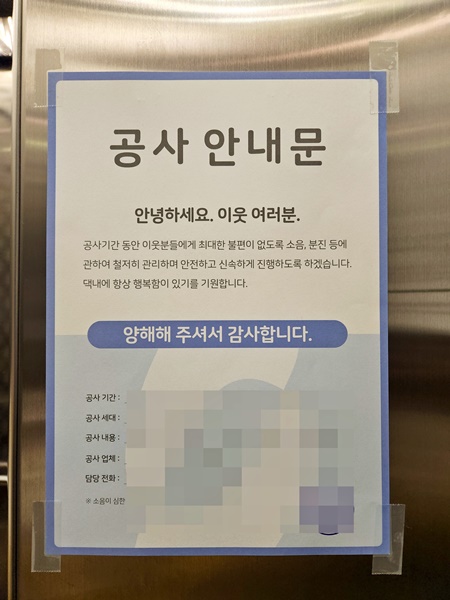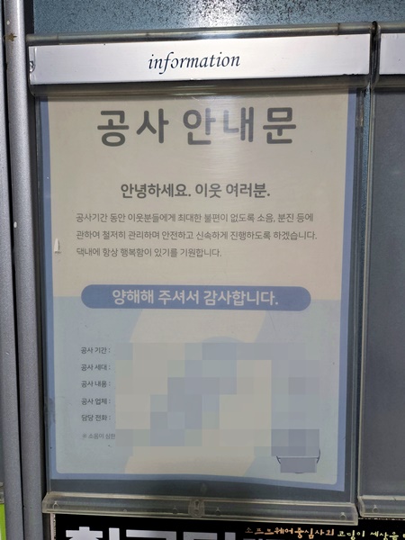 공사 일정이나 소음 예정일 등을 안내하면서