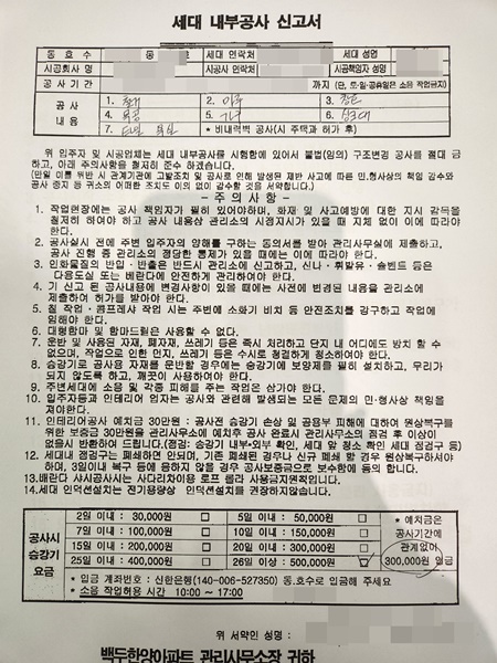인테리어 공사 신고와 입주민 동의서 과정은