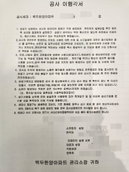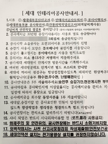 인테리어 리모델링을 하기 전 입주민 동의를 얻기 위해