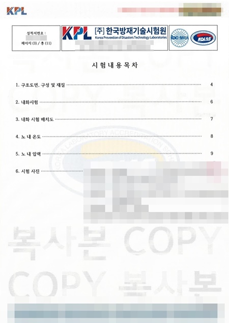 사용승인용 시험성적서와 납품확인서도 함께 제공하여