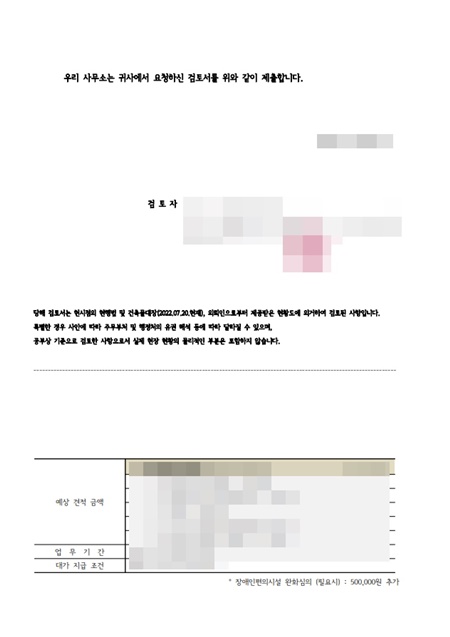 검토한 모든 내용과 건축물대장을 포함한 검토서를