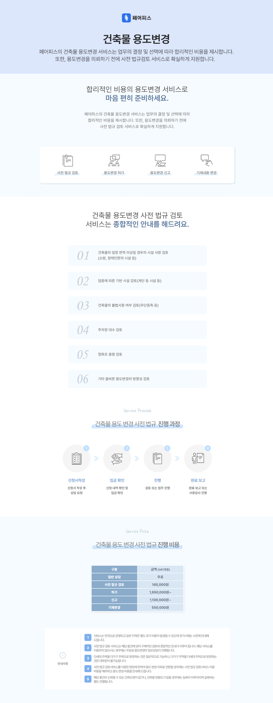 페어피스의 용도변경 사전 법규 검토 서비스는