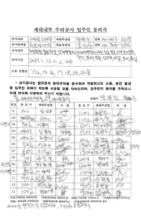 입주민 동의 서명을 받을 여유가 없으시거나