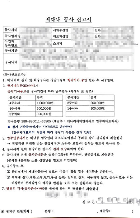 아파트마다 정해진 인테리어 동의서 기준도 다르고