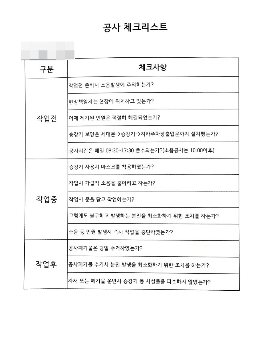 관리사무소 공사신고시 보양 작업 범위를 확인하여