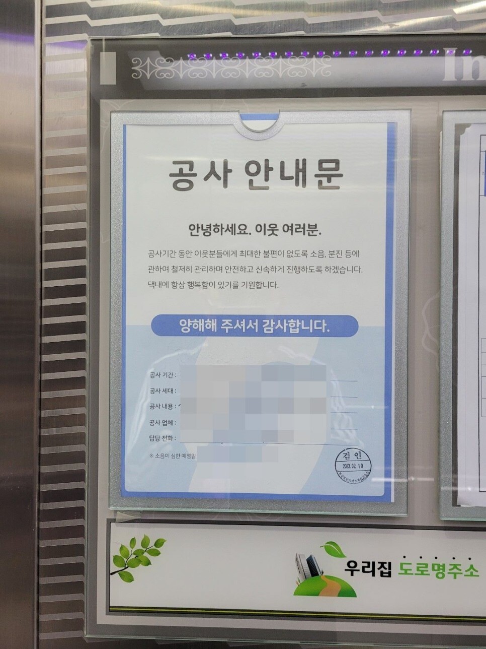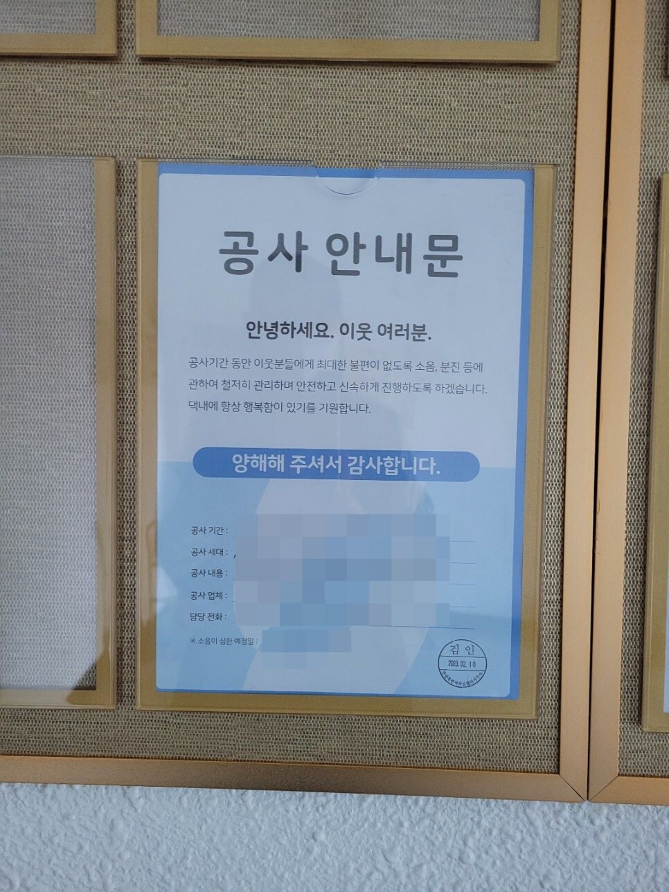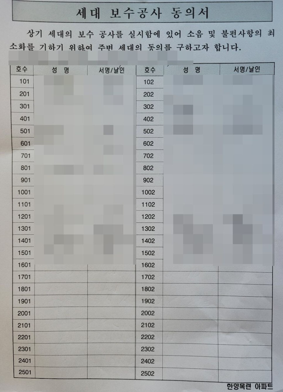 해당 동 입주민분들께 인테리어 공사 동의를 구하기 위해