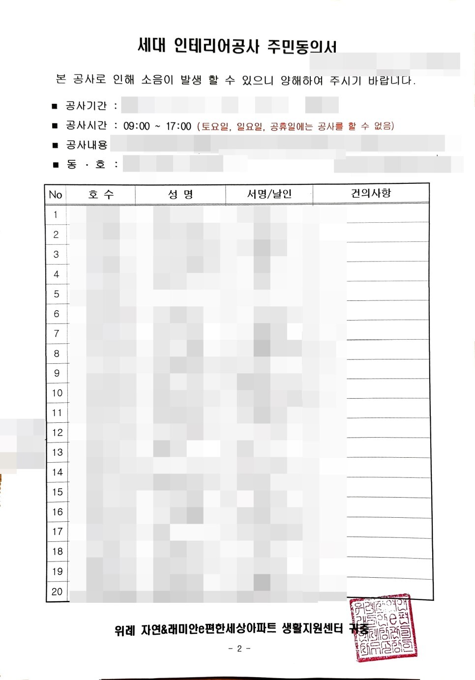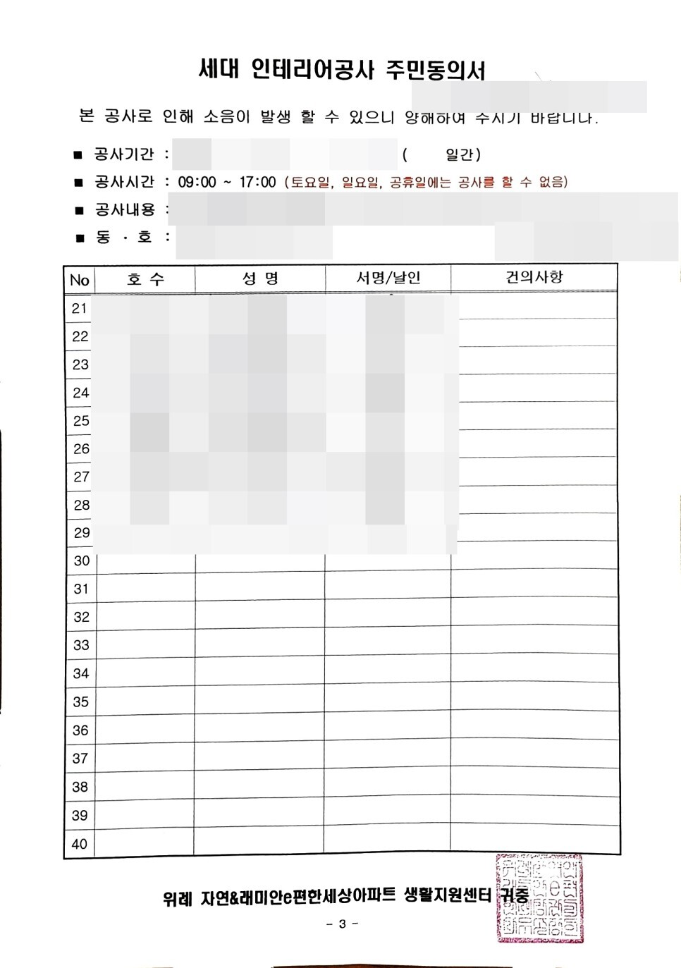 해당 동 입주민분들께 인테리어 공사 동의를 구하기 위해