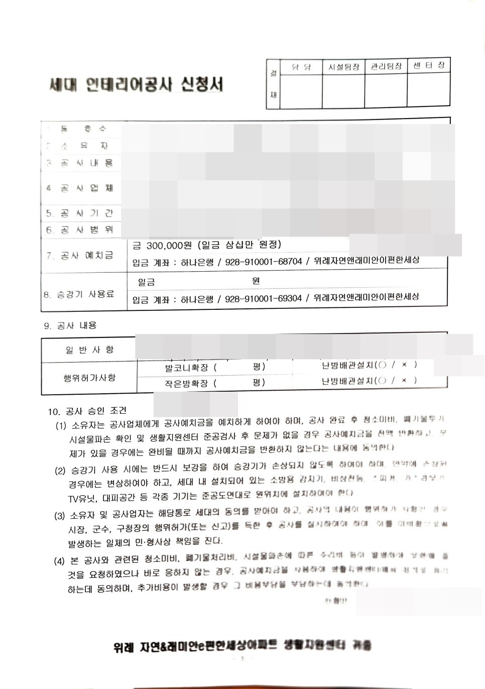 인테리어동의서에 발코니확장, 비내력벽 철거 등의 내용이