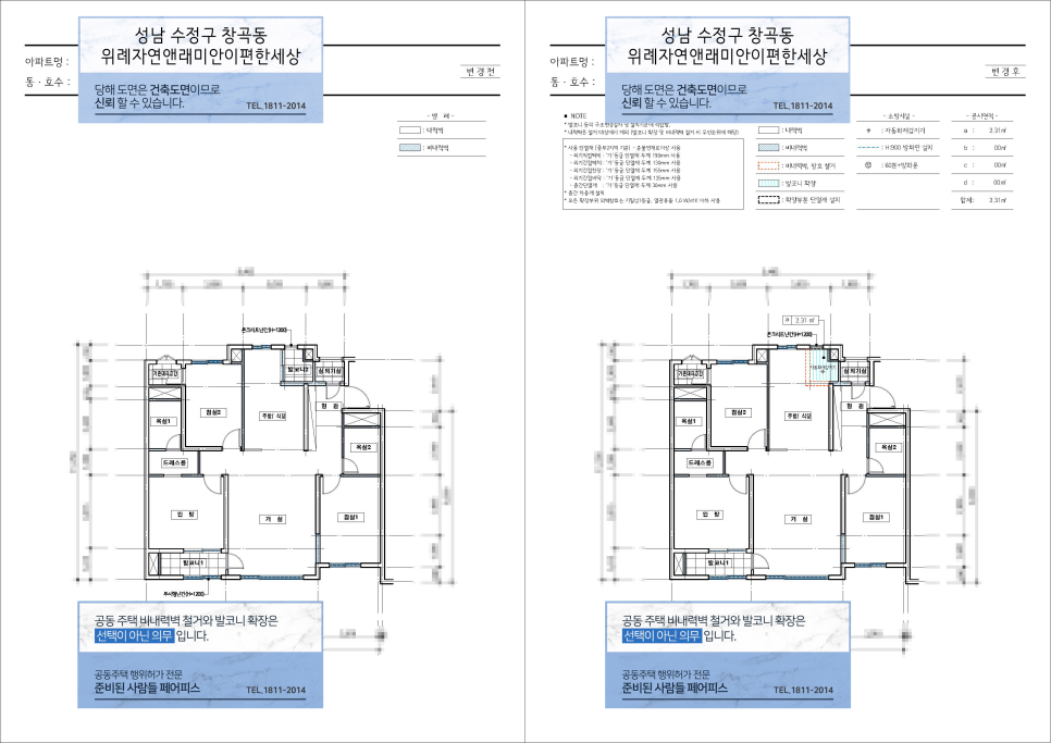 아파트 도면은 변경 전과 변경 후가 모두 필요합니다.
