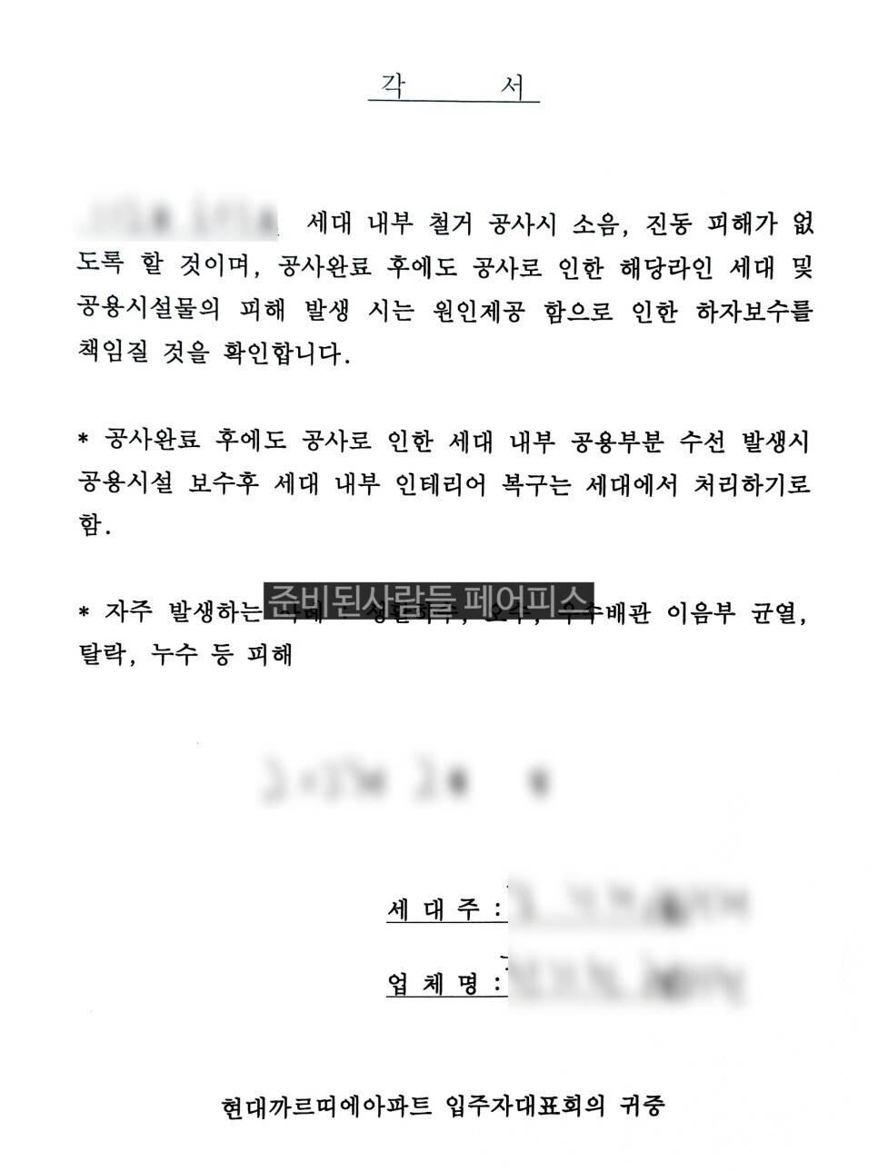 해당 동 입주민분들께 인테리어 공사 동의를 구하기 위해