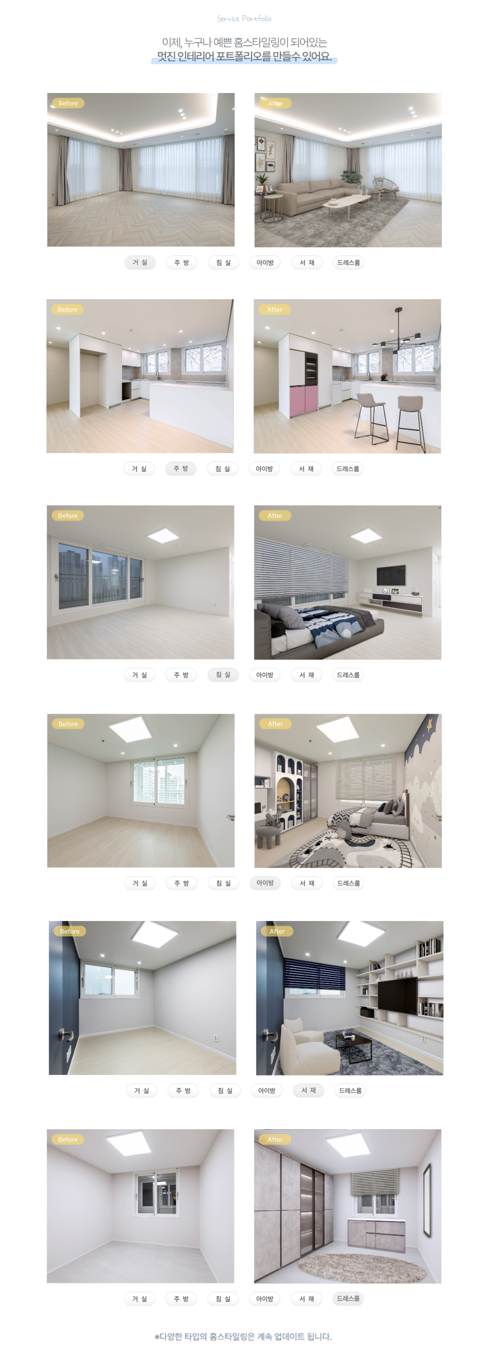 거실, 주방, 침실, 아이방, 서재, 드레스룸 등등