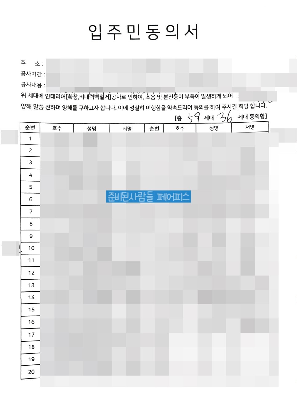 해당 동 입주민분들께 인테리어 공사 동의를 구하기 위해