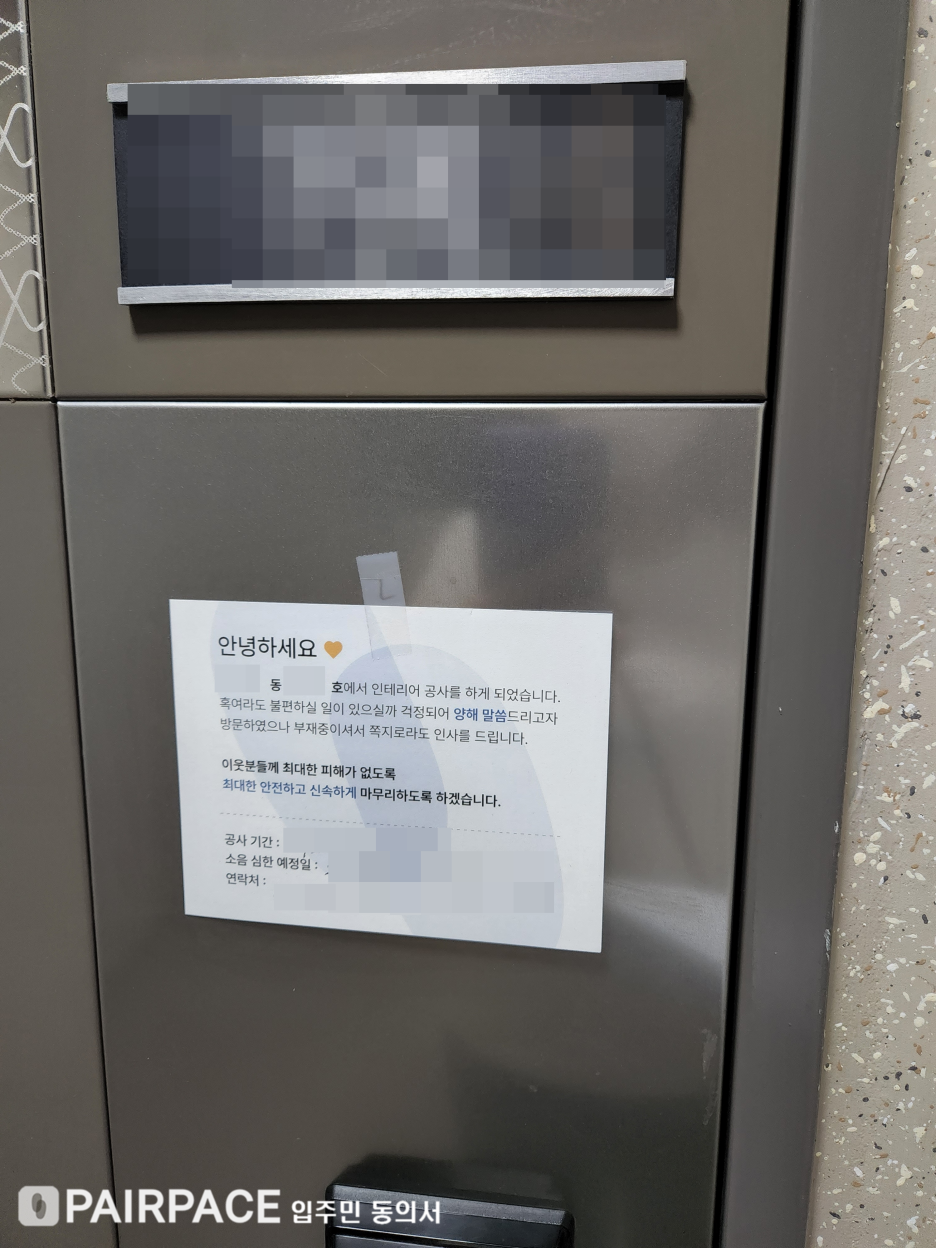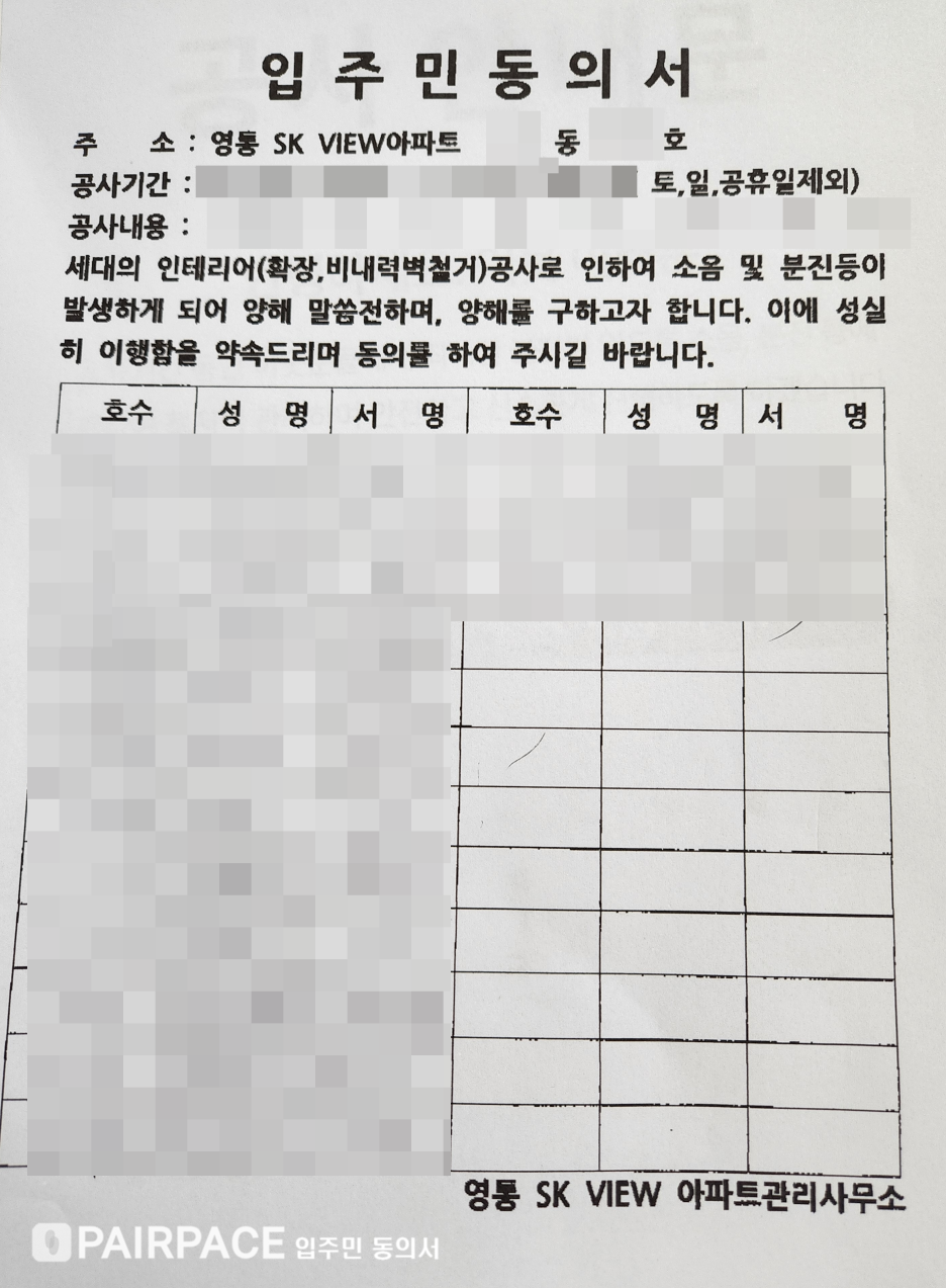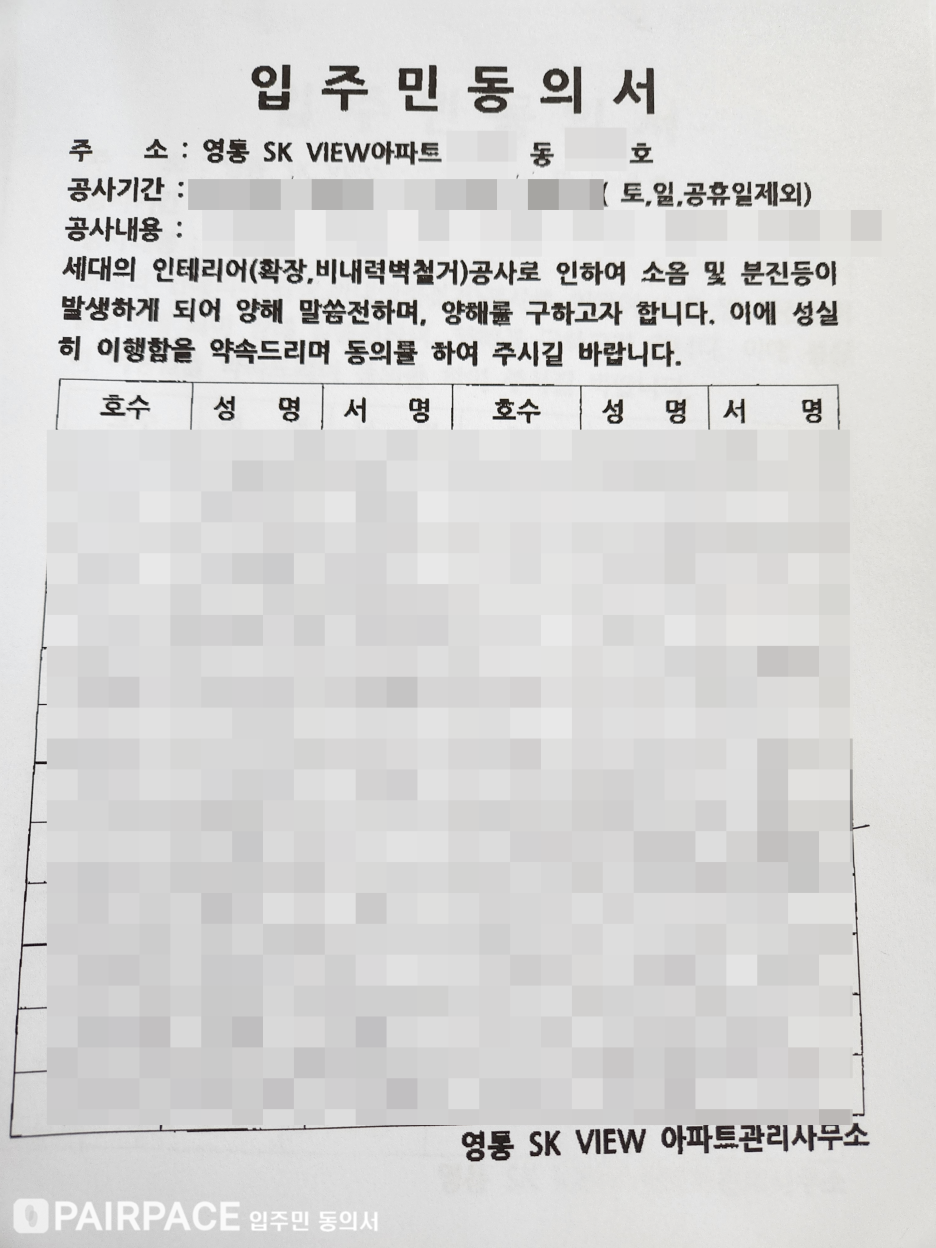 해당 동 입주민분들께 인테리어 공사 동의를 구하기 위해