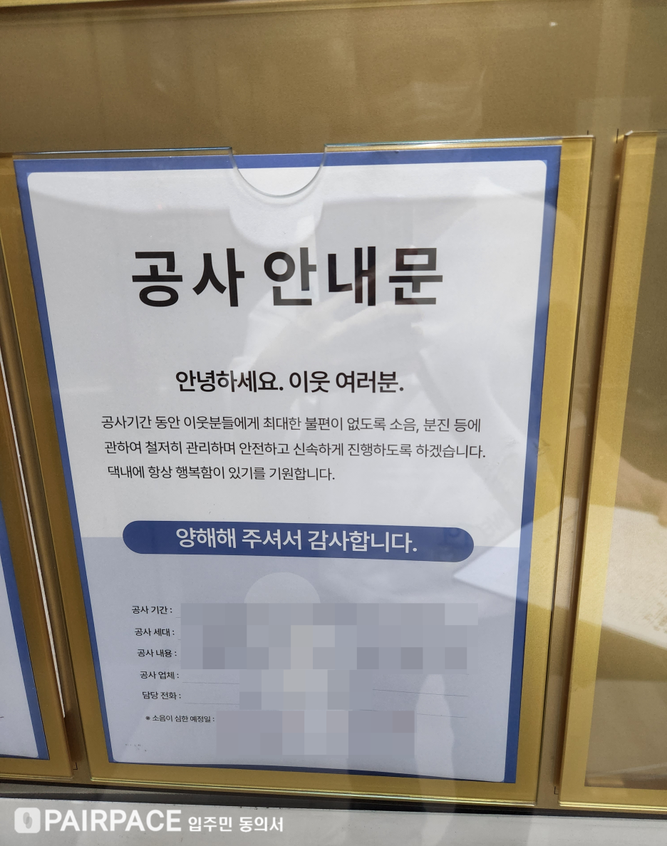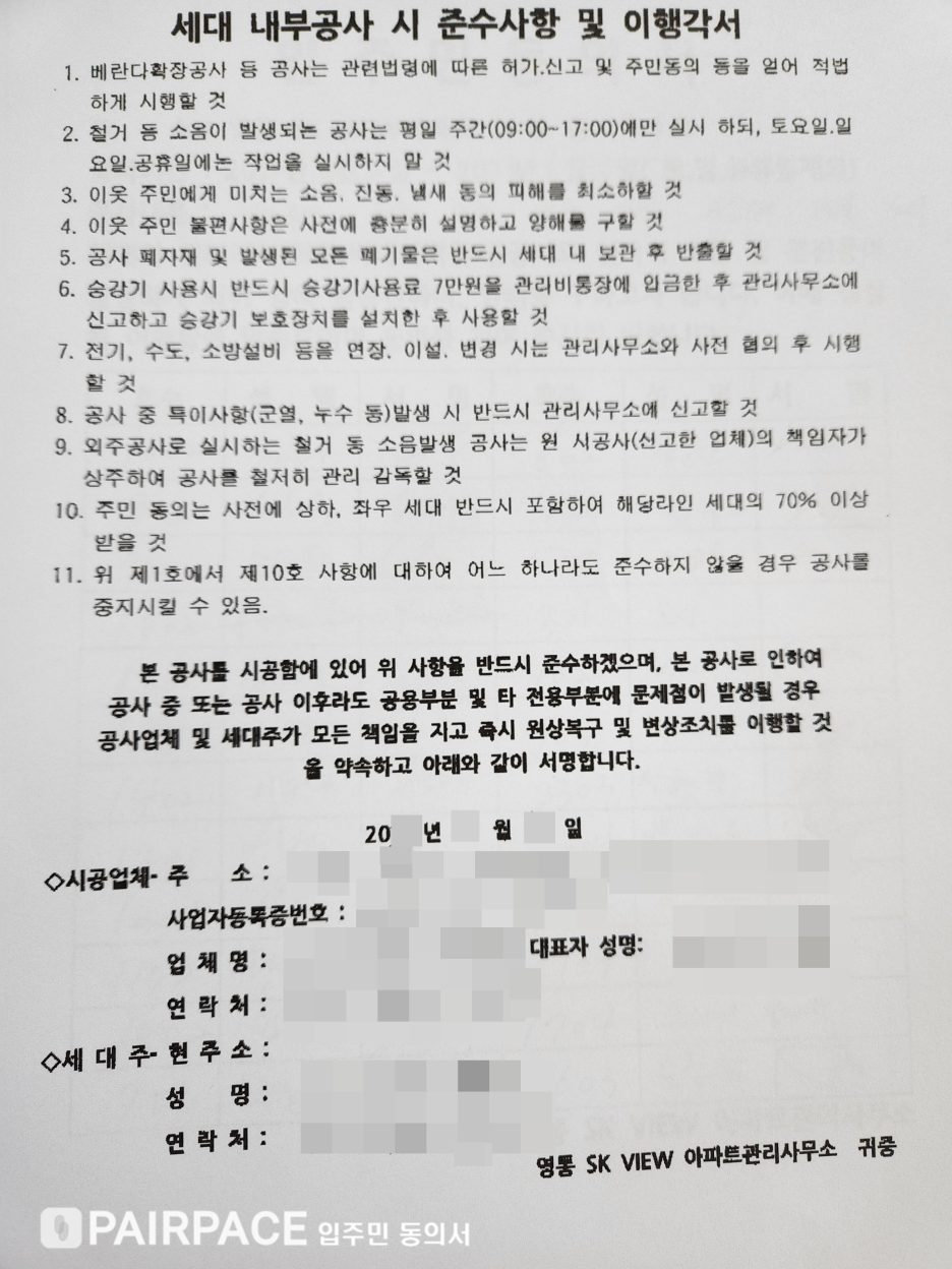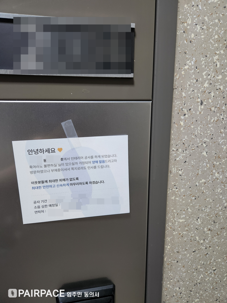 해당 동 입주민분들께 인테리어 공사 동의를 구하기 위해