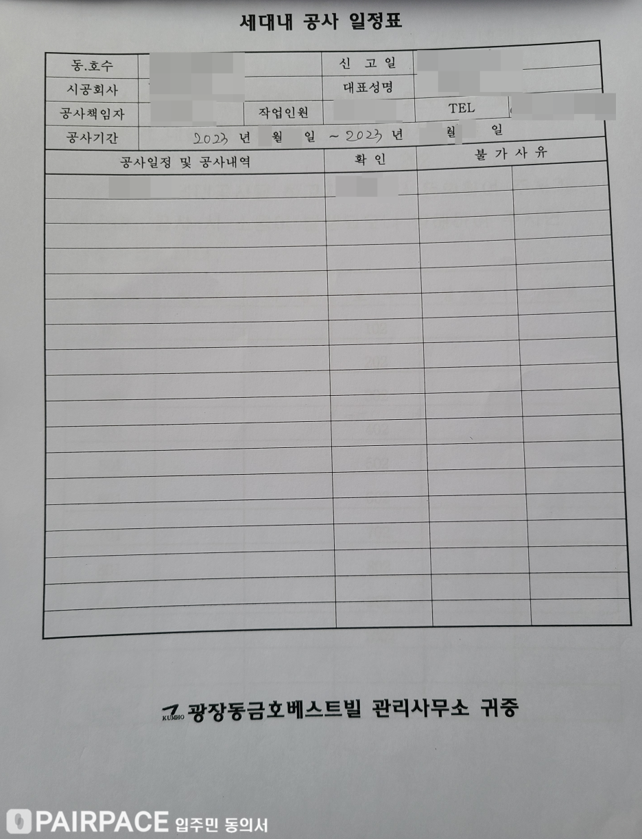 해당 동 입주민분들께 인테리어 공사 동의를 구하기 위해