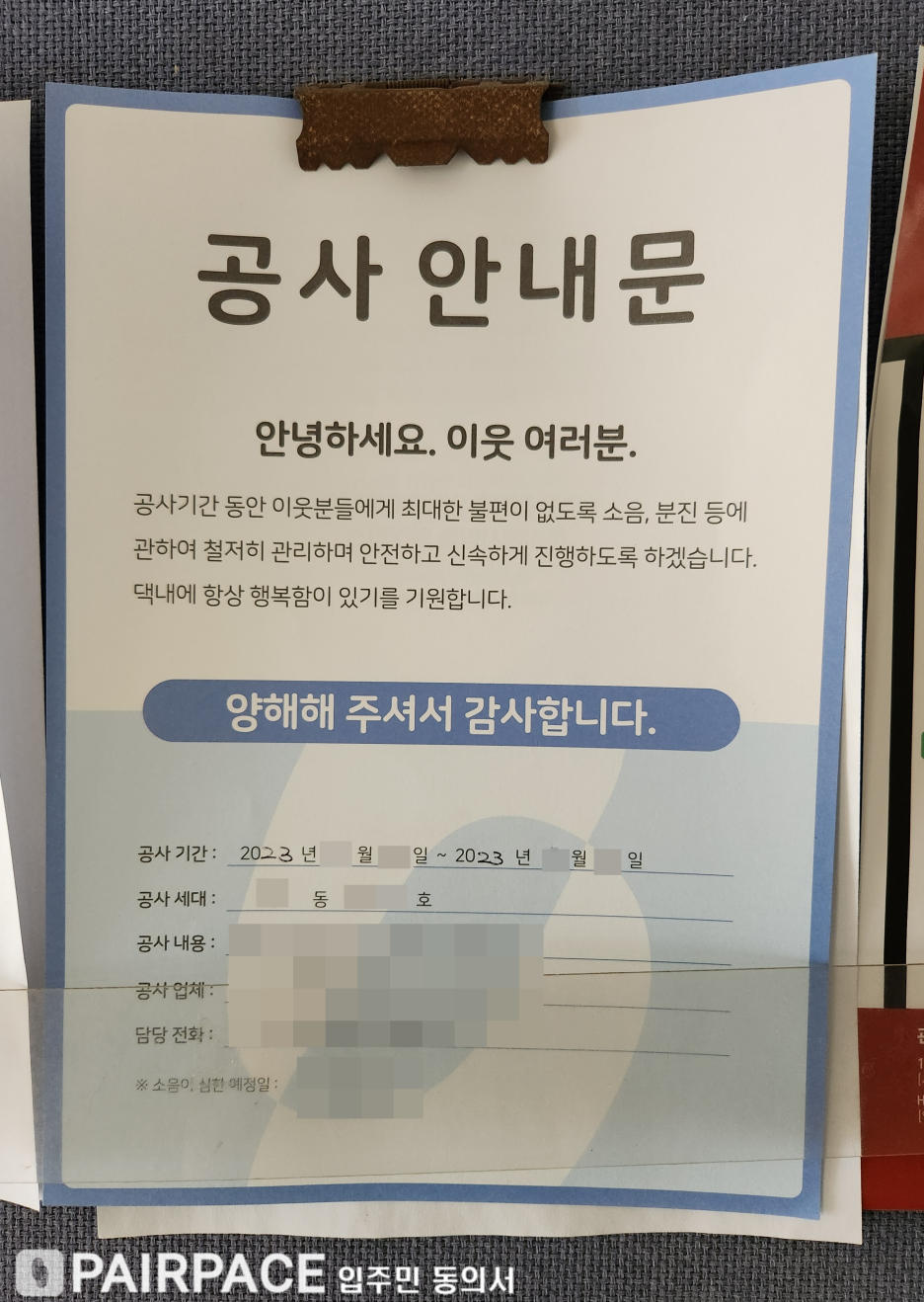 공사안내문 부착