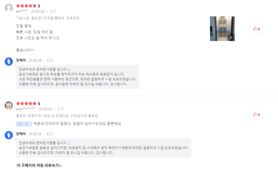 공사 전 엘리베이터 보양시공 리뷰 였습니다!