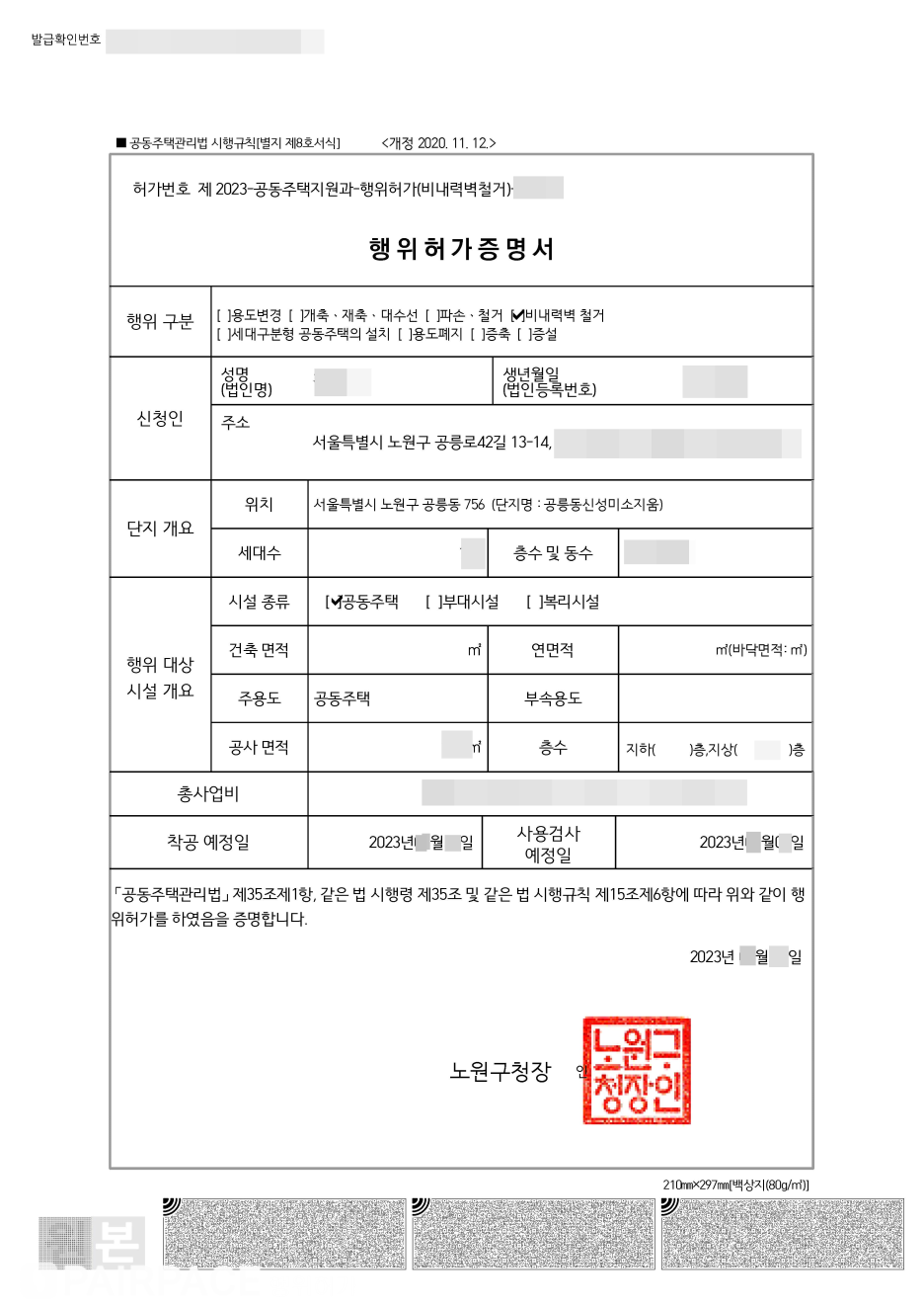 인테리어동의서 + 행위허가 서비스를