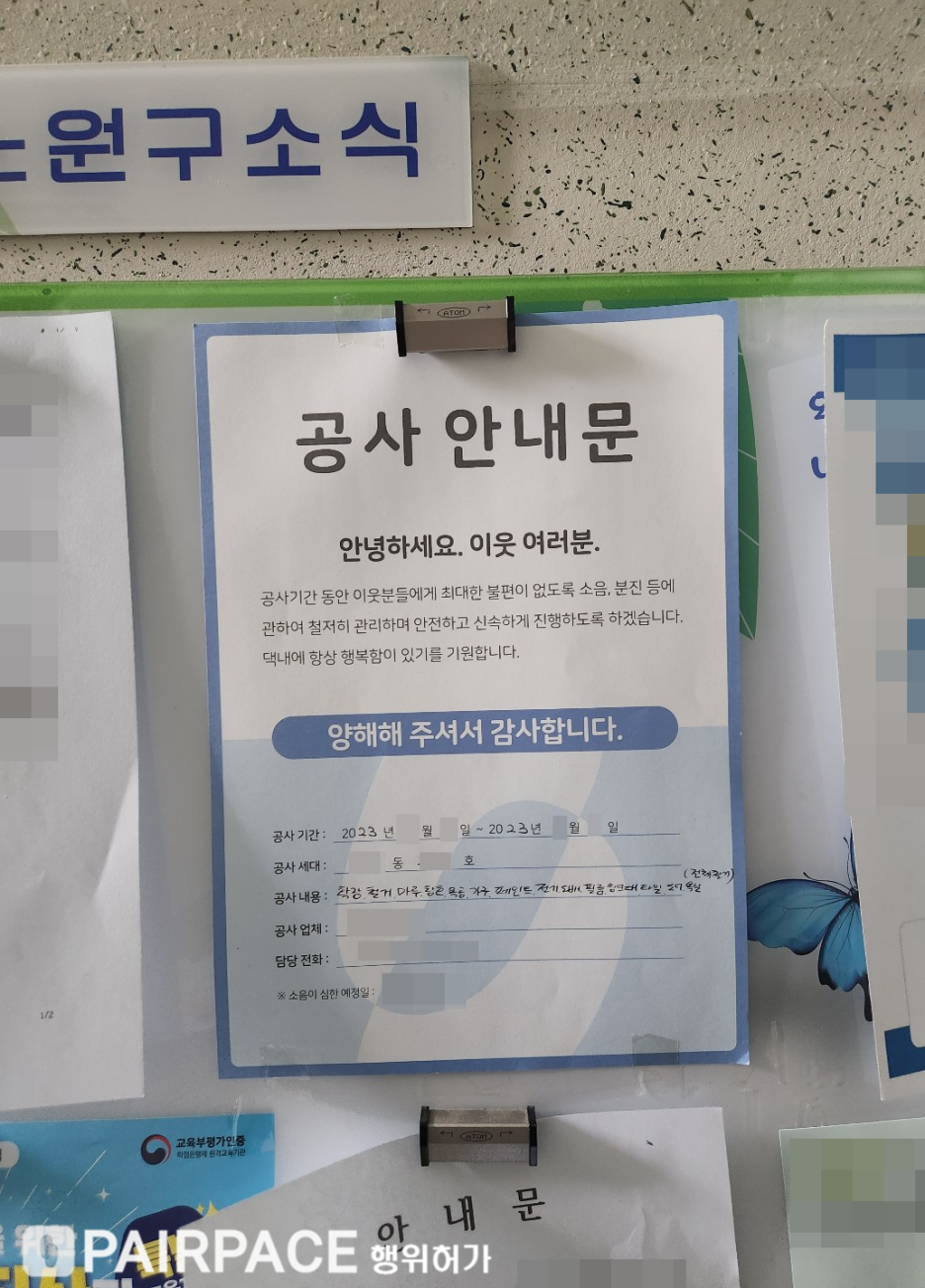 개별적으로 공사기간, 소음 일정, 공사 담당자
