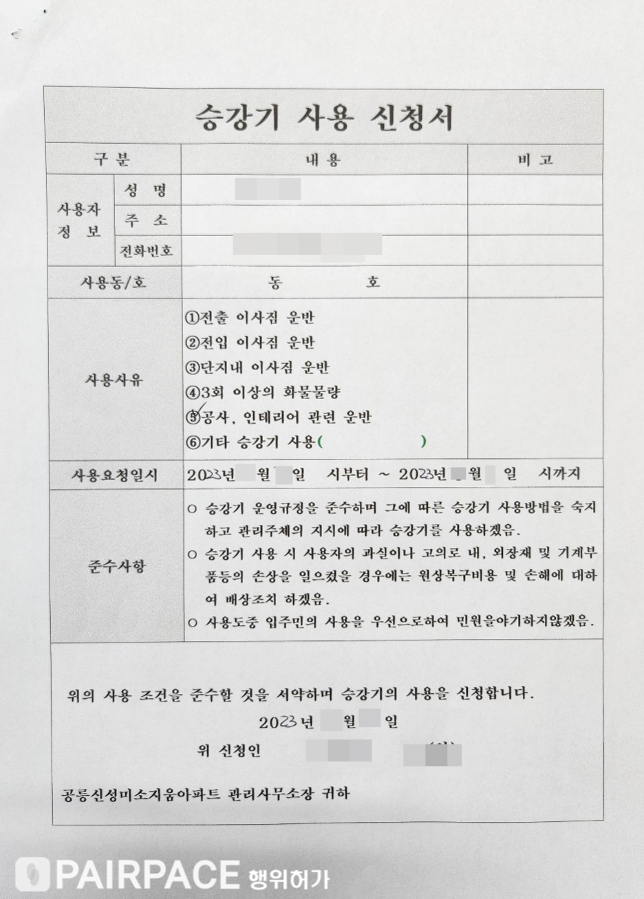 -승강기 사용 신청서