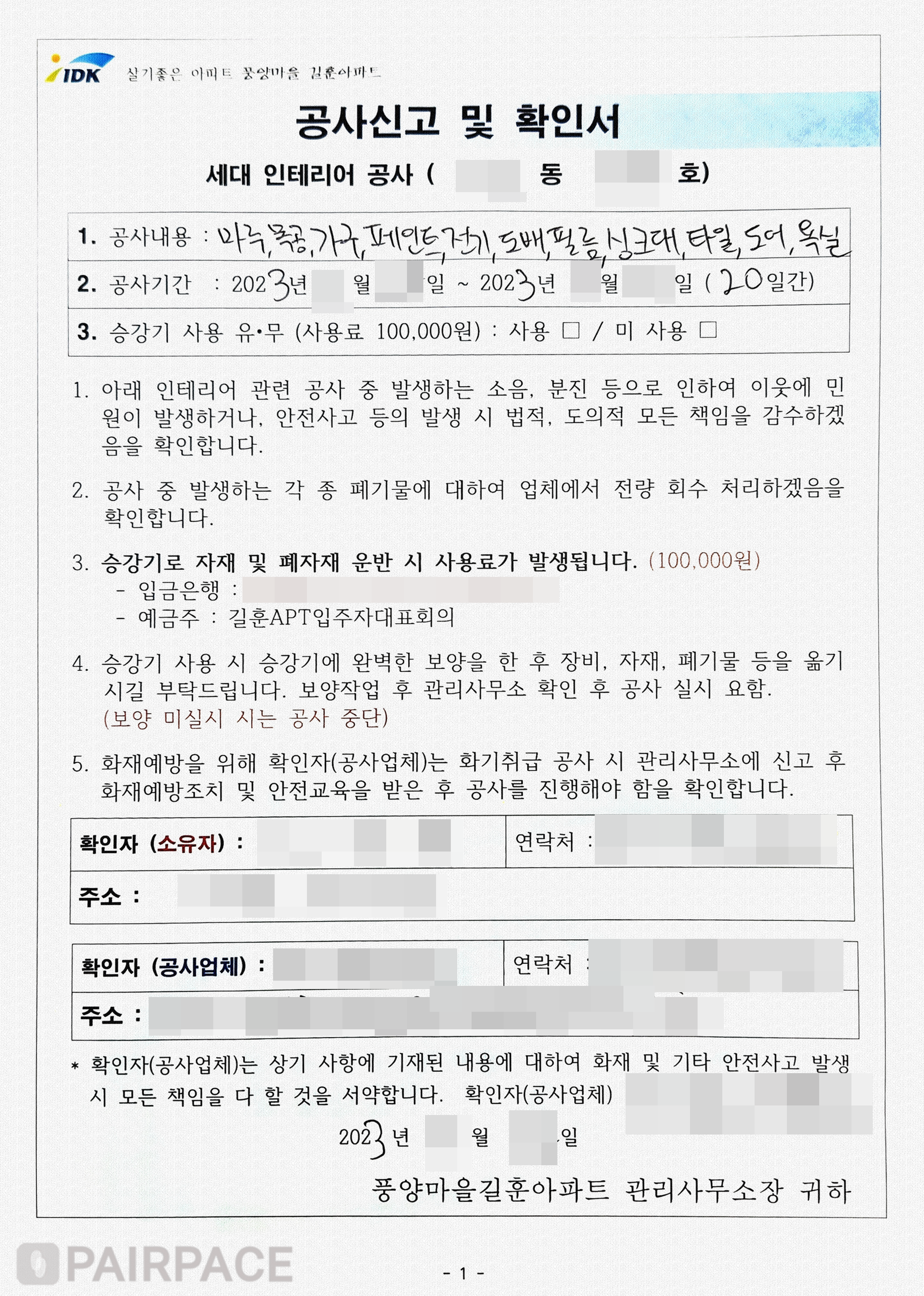 인테리어동의서·입주민동의서의