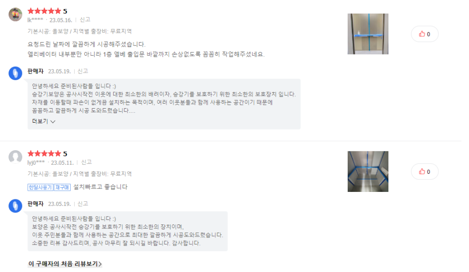 ✔ 실내보양 같은 경우는 승강기 보양보다