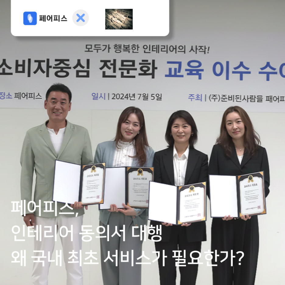| 국내 최초로 시작된 인테리어 지원업무 대행, 준비된 사람들 페어피스 (0) | 2025.10.02 |